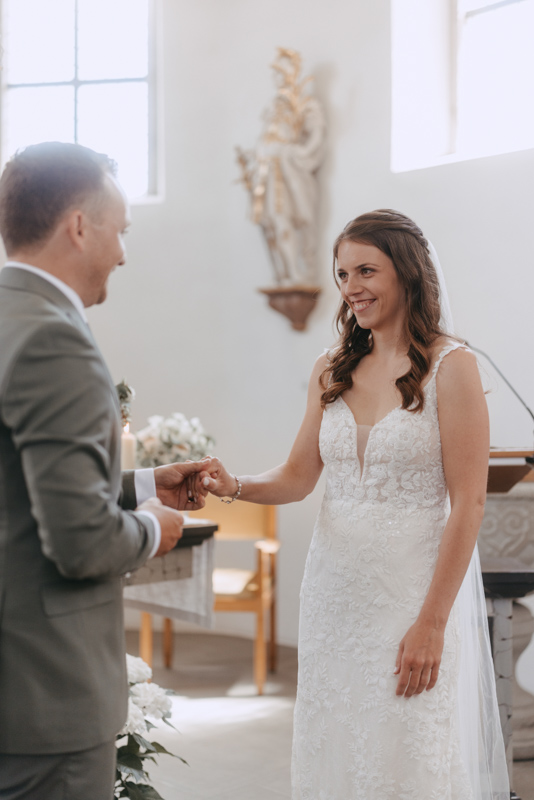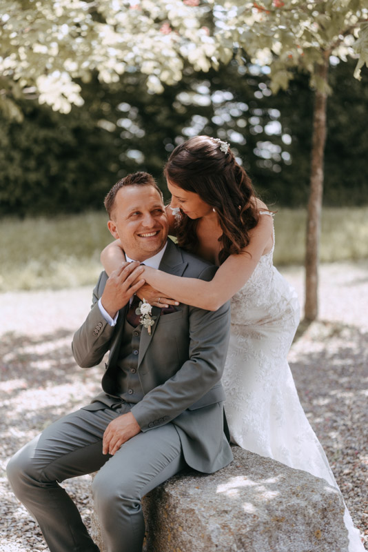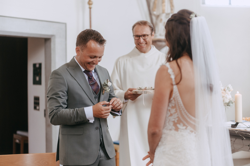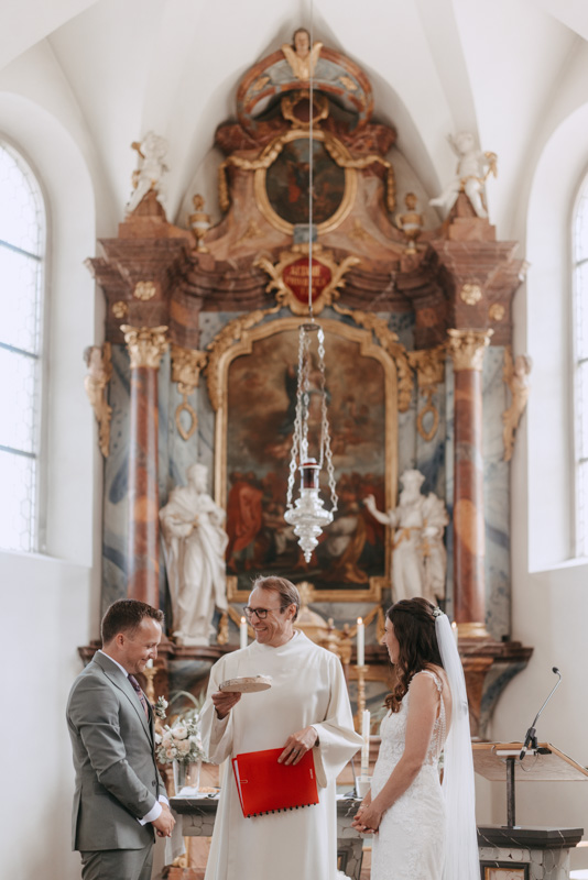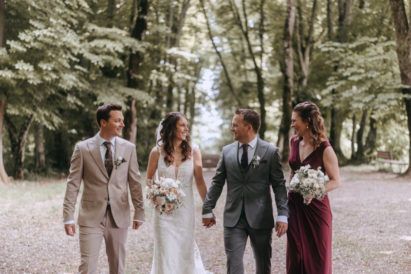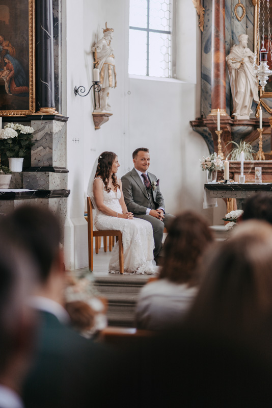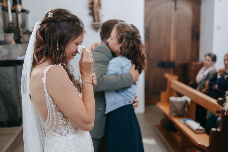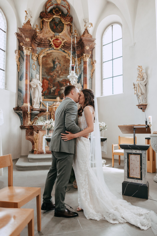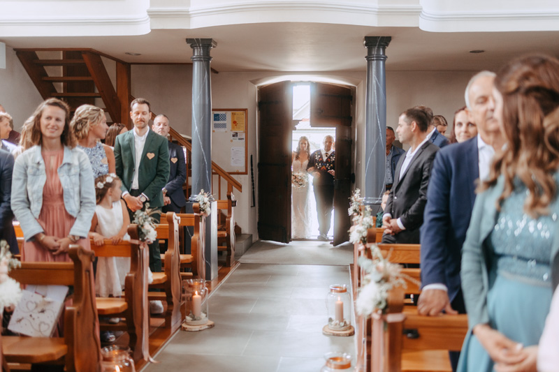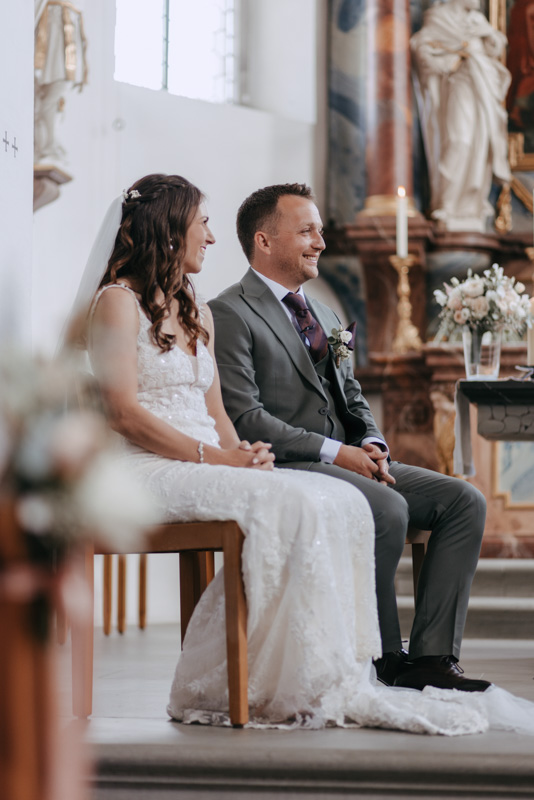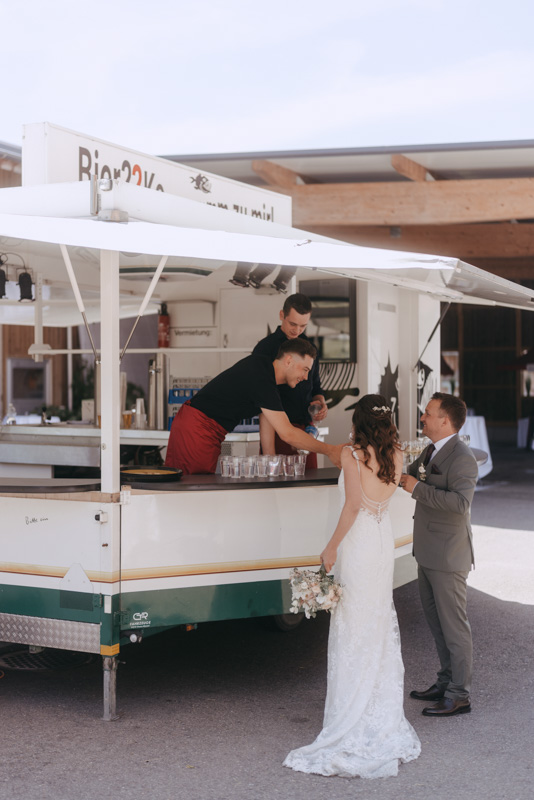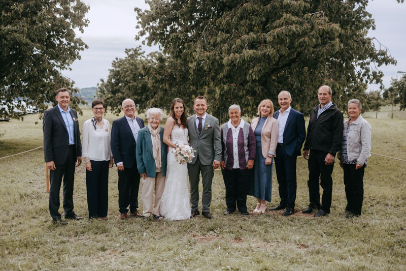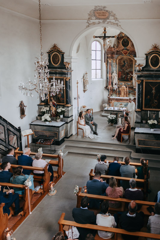 Nach dem First Look und der kirchlichen Trauung fand der Apéro beim Brautpaar auf dem Hof statt. Eine grosse Anzahl gut gelaunter Gäste, bestes Wetter, tolle Livemusik und Kühe mittendrin – was will man mehr. 🙂 Anschliessend feierte die Gesellschaft im wunderschönen Brunhof weiter, die Deko und der Ausblick waren das i-Tüpfelchen eines traumhaften Tages.