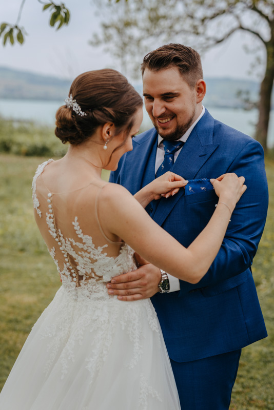 Beim Seehotel Sonne in Eich durfte ich bereits einige Hochzeiten fotografieren, nun zum ersten Mal nach dem Umbau, welcher sehr gelungen ist. Es ist immer wieder spannend zu erfahren, wie sich die Paare kennengelernt habe. Die Liebesgeschichte von Julia und Oliver ist ganz besonders, denn sie haben sich in Frankreich kennengelernt und auch trotz der anschliessenden Trennung von hunderten Kilometern hielten sie an ihrer Liebe fest – zum Glück! So integrierten sie auch ihre beiden Heimatländer Schweiz und Österreich an ihrem grossen Tag. Und ist der First Look mit dem Papa nicht eine mega schöne Idee?!