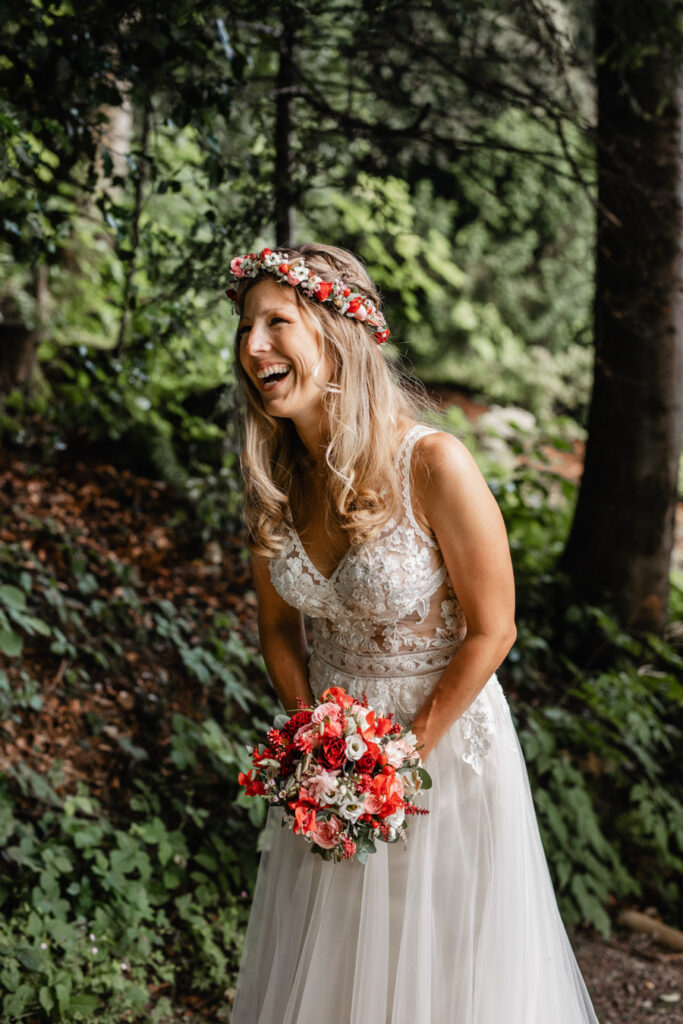 Obwohl die beiden ihre Hochzeit wegen Corona verschieben mussten, konnte ihre Hochzeit nur kurze Zeit später stattfinden. Dies war aber nur dank der Flexibilität und Mithilfe aller Gäste möglich. Das alleine zeigt schon, was für ein tolles Brautpaar die beiden sind. Ich war auch geflasht von den schönen Outfits inkl. Blumenschmuck und Accessoires, den vielen liebevollen Details, der tollen Location bei der Trauung und am Abend. Ich liebe, liebe einfach freie Trauungen, da es persönlicher kaum geht und man viel über das Brautpaar erfährt. Sie haben ihren grossen Tag gemeinsam mit ihren Kindern, Freunden und Verwandten gefeiert und ich bin dankbar, dass ich ein Teil davon sein durfte.