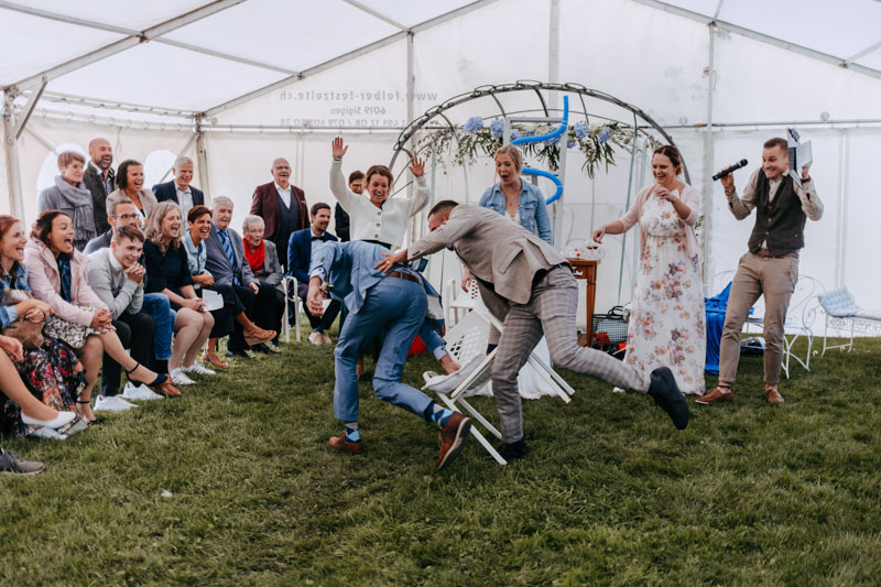 Marion und Mäsi feierten gemeinsam mit ihren Kindern ihre Liebe. Sie und ihre Hochzeitsgäste waren so wunderbar unkompliziert. Dies spiegelte sich bei der freien Trauung im Rosengarten, beim Apéro im Kollerhuus und beim rauschenden Hochzeitsfest im Galfri-Chalet wieder. Diverse Darbietungen sorgten für Unterhaltung und am Abend lief nebst meinen Kameras auch meine Fotobox heiss. Ich bin immer wieder dankbar wie herzlich „meine“ Paare und ihre Gäste sind und ich bei der Hochzeitsgesellschaft aufgenommen werde. Ausserdem waren unter den Gästen auch Paare, deren Hochzeit ich schon vor mehreren Jahren fotografieren durfte, solche Wiedersehen freuen mich stets.