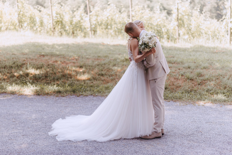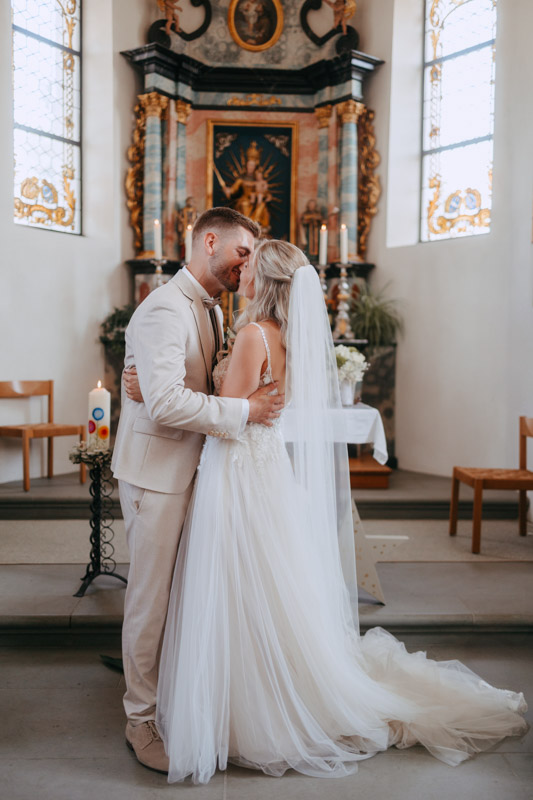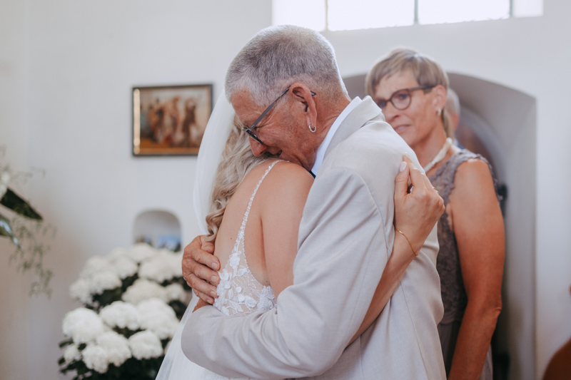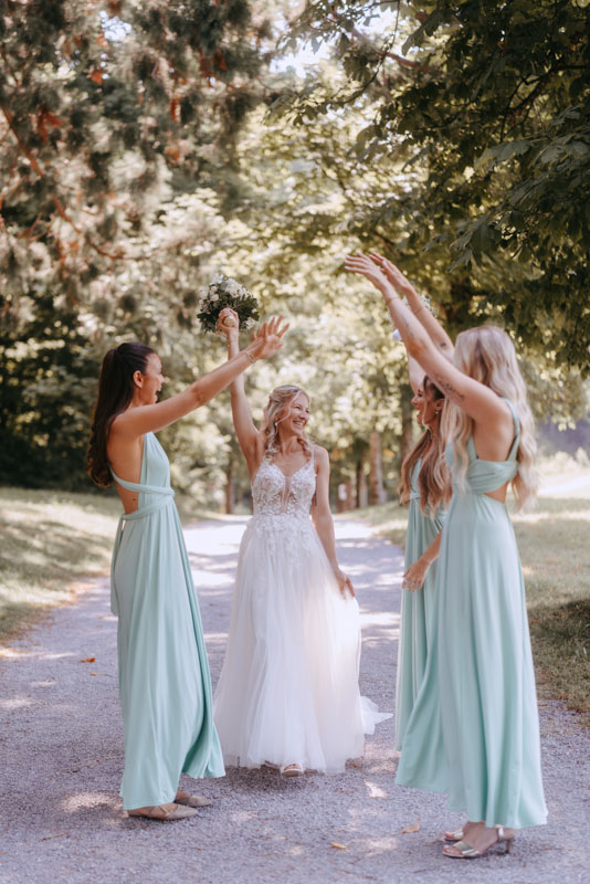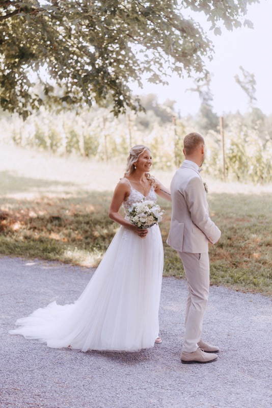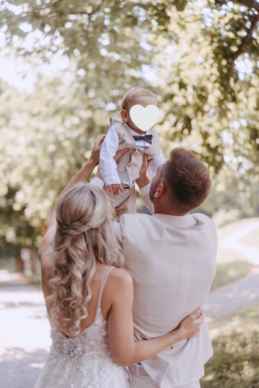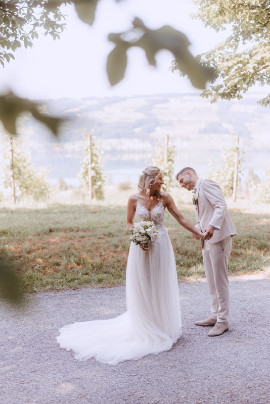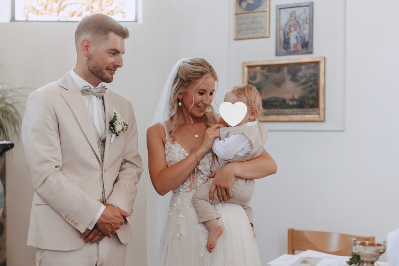 Bei schönstem Wetter trafen die beiden das erste Mal an ihrem grossen Tag aufeinander. Die beiden sahen einfach wunderschön aus! Nebst Fotos vom Brautpaar hatten wir auch noch Zeit für einige Fotos mit ihrem kleinen Sohn zusammen und auch noch mit den Brautjungfern. Nach dem First Look ging es weiter zur Kapelle Gibelflüh zur Hochzeit und Taufe ihres kleinen Sohnes. Im Anschluss des ausgelassenen Apéros zog sich die gute Stimmung weiter bis zum Abend im Südhang in Eschenbach. Die Sonne strahlte mit den beiden um die Wette und zum Glück hatten auch die aufkommenden Gewitterwolken keine Chance, sodass auch noch ein perfekter Sunset Shoot möglich war.