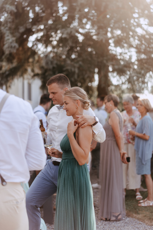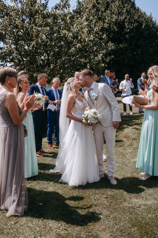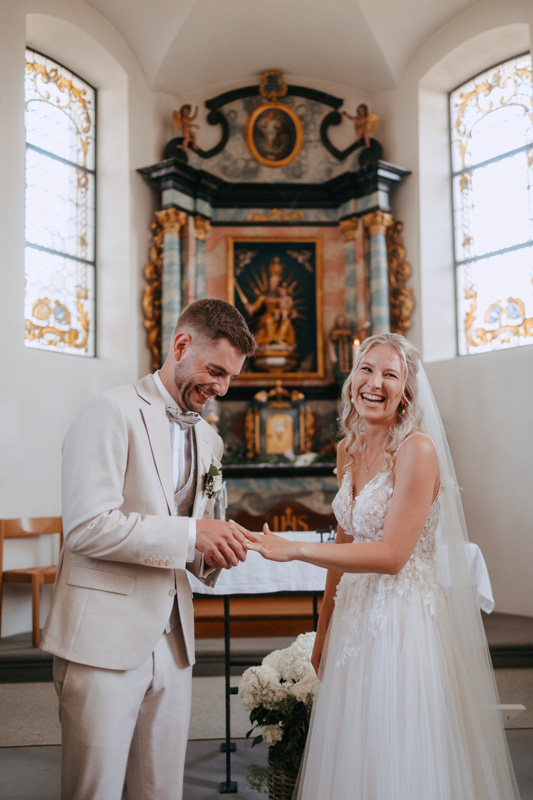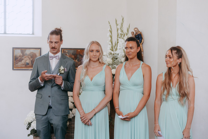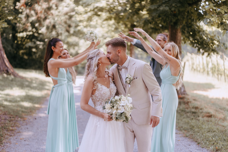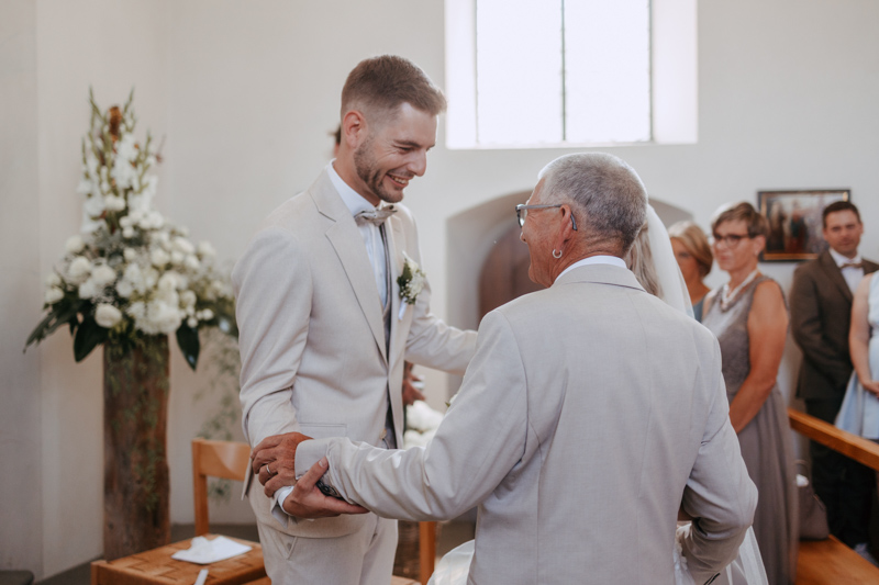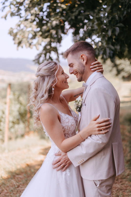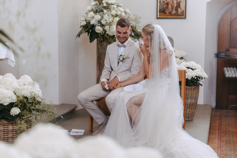 Bei schönstem Wetter trafen die beiden das erste Mal an ihrem grossen Tag aufeinander. Die beiden sahen einfach wunderschön aus! Nebst Fotos vom Brautpaar hatten wir auch noch Zeit für einige Fotos mit ihrem kleinen Sohn zusammen und auch noch mit den Brautjungfern. Nach dem First Look ging es weiter zur Kapelle Gibelflüh zur Hochzeit und Taufe ihres kleinen Sohnes. Im Anschluss des ausgelassenen Apéros zog sich die gute Stimmung weiter bis zum Abend im Südhang in Eschenbach. Die Sonne strahlte mit den beiden um die Wette und zum Glück hatten auch die aufkommenden Gewitterwolken keine Chance, sodass auch noch ein perfekter Sunset Shoot möglich war.