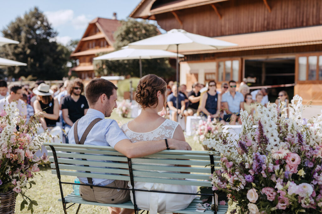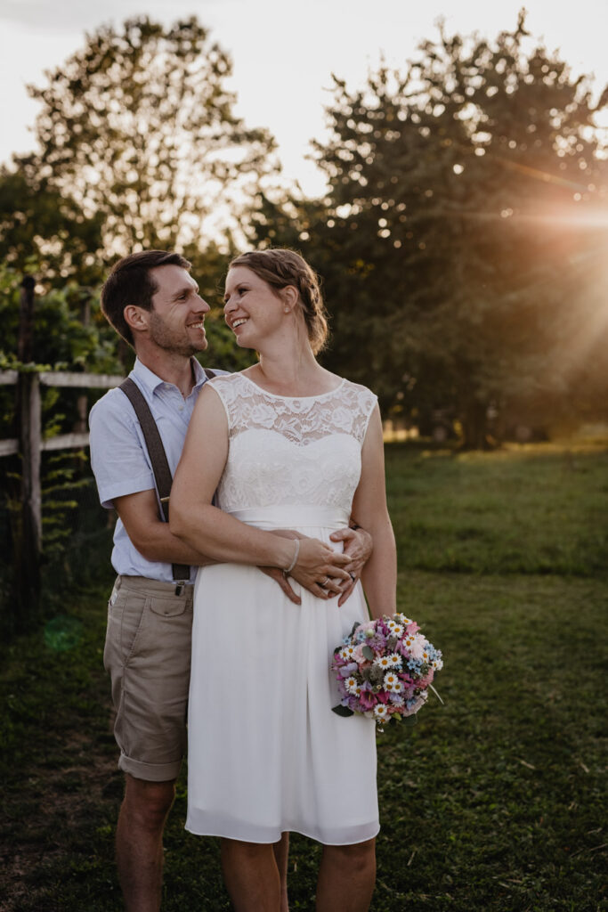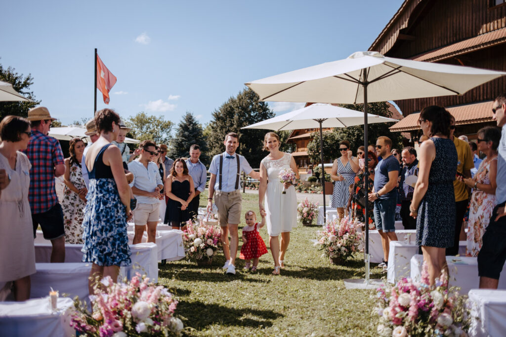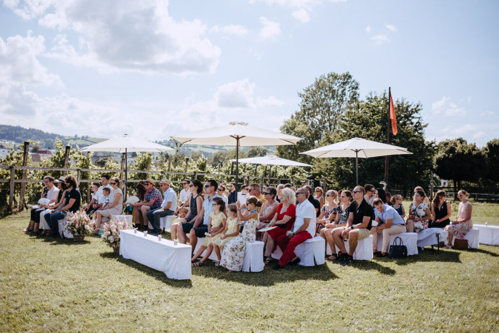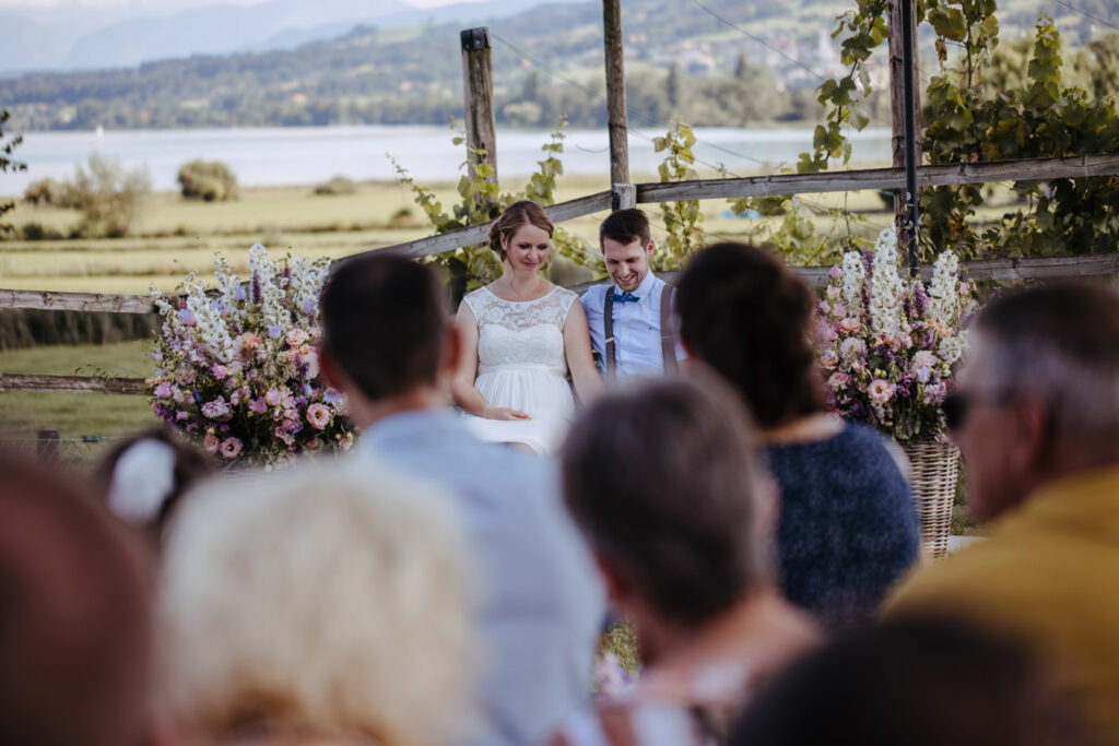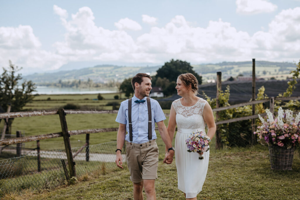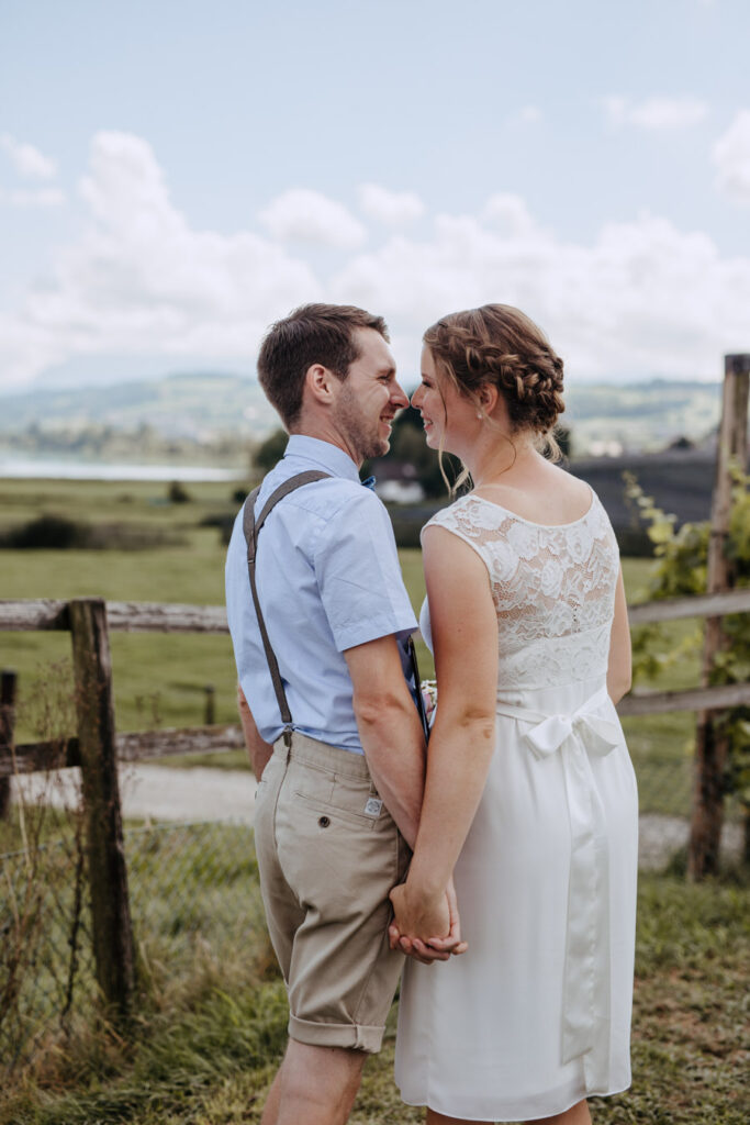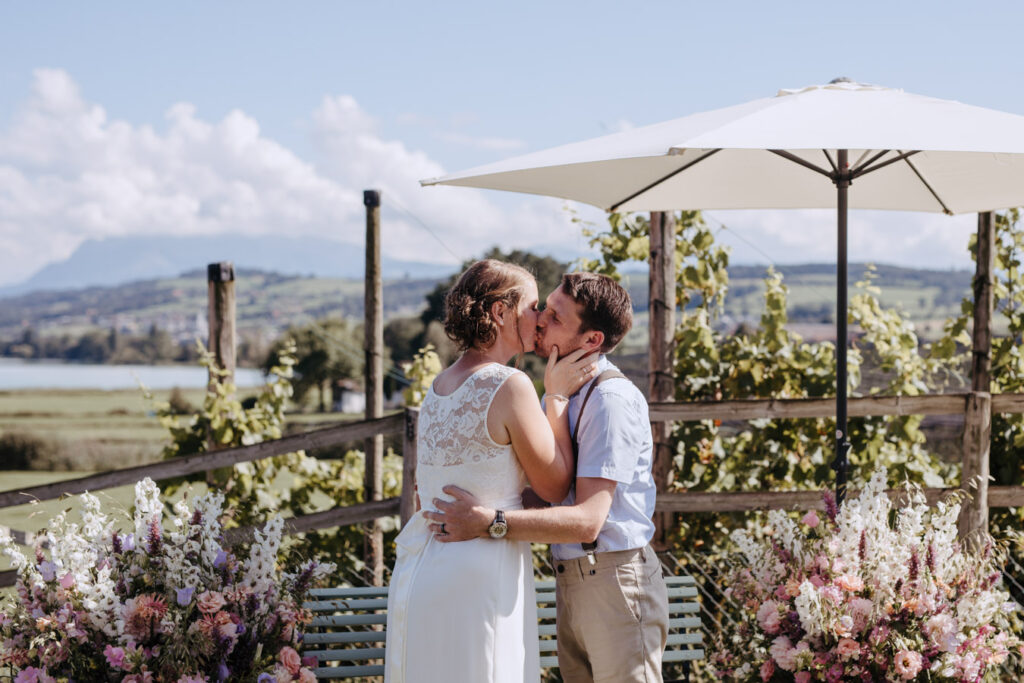 Denise und Pascal durfte ich bereits während der Schwangerschaft und zusammen mit ihrer Tochter fotografieren, sodass ich mich umso mehr auf ihre Trauung beim Lindenhof in Oberkirch gefreut habe. Wie man an den Bildern unschwer erkenne kann, zog sich das Thema „Anker“ durch die ganze Hochzeit der beiden. Sie haben ihren grossen Tag mit viel Liebe zum Detail gestaltet, was mich als Fotografin immer besonders freut. Auch die unkomplizierte Art der beiden spiegelte sich an ihrer Hochzeit wieder, nicht nur die Trauung konnte bei strahlendem Sonnenschein im Freien stattfinden sogar das Abendessen inkl. Food Truck, Glacévelo und Bar. Aber sie hatten nicht nur Wetter- sondern auch Familienglück, verrieten sie doch während der Trauung, dass ihr kleine Tochter bald grosse Schwester wird. Ich freue mich sehr, dass ich vom weiteren Nachwuchs ebenfalls Fotos machen darf.