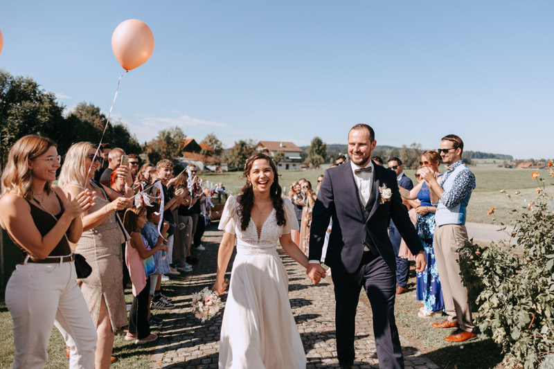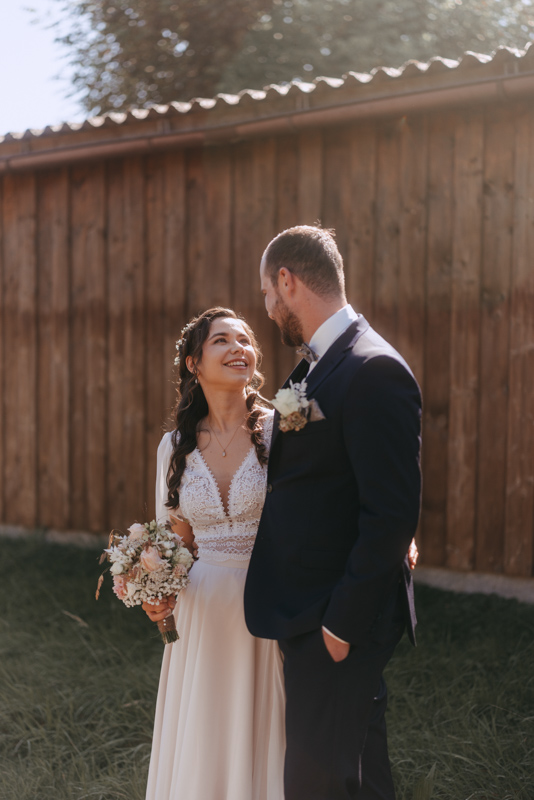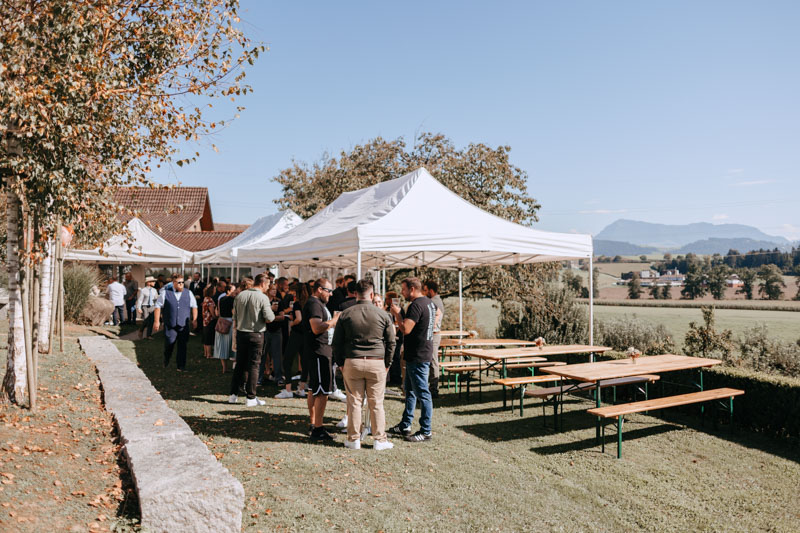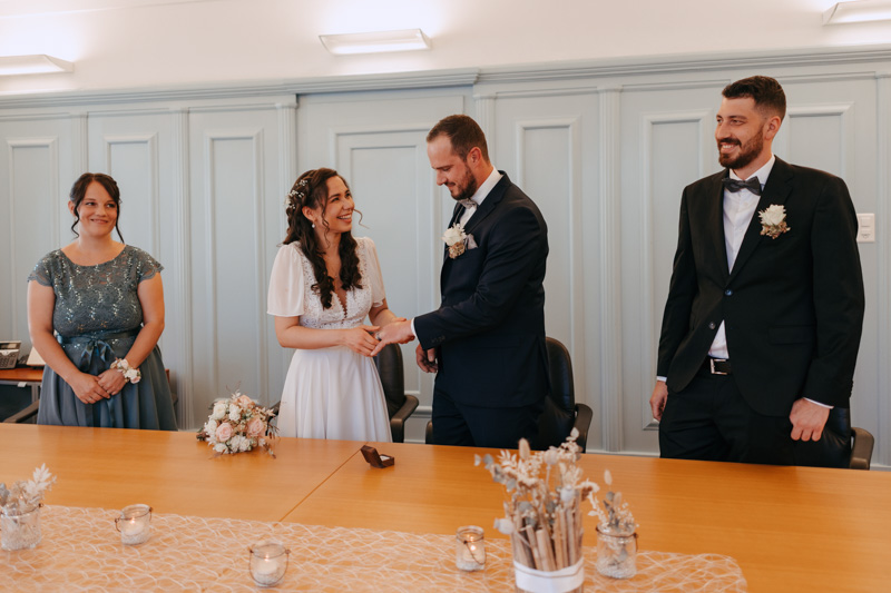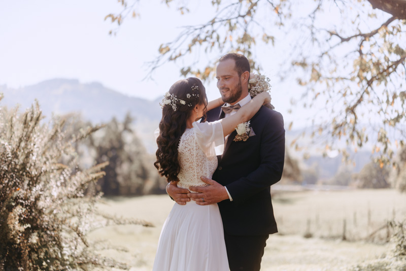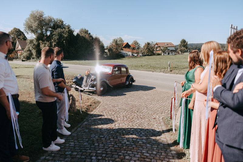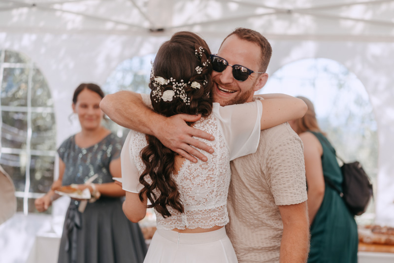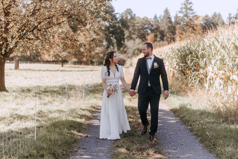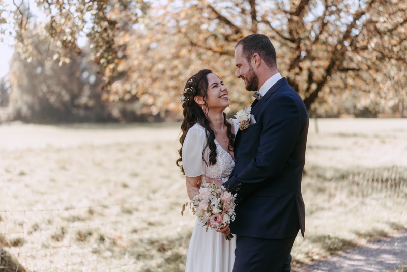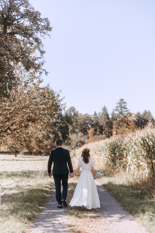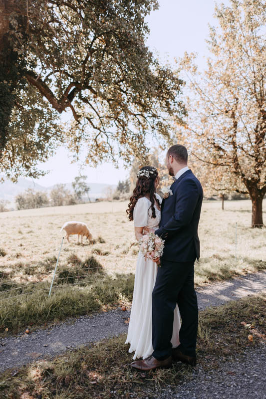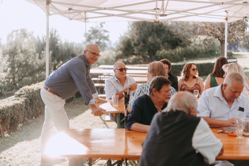 Nach dem First Look und Fotoshooting rund um ihr Zuhause folgte die zivile Trauung in kleiner Runde. Bei strahlendem Sonnenschein könnte man meinen, es wäre eine Sommerhochzeit, aber nein, es war tatsächlich bereits der 20. September. Der Apéro beim Wöschhüüsli Gibelflüh war einfach nur herrlich entspannt. Merci vielmals, durfte ich an eurem grossen Tag dabei sein!